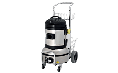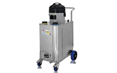 Generador de vapor bifasico o trifásico, con recarga automática y sensor de nivel electromagnético al interior de la caldera, carrocería de acero inox con impermeabilidad IPX5, inyección de detergente. Instrumento digital con función de: manómetro, cuenta horas, conexión directa a la red hídrica. Con aspirador de solidos y liquidos dotado de un flotador. Opcional: inyección de agua caliente.