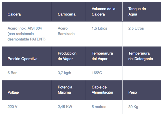 Generador de vapor, con recarga automática con sensor de nivel electromagnético al interior de la caldera – True Temp, carrocería de acero barnizado, con aspiradora de solidos y liquidos, con tanque de asipiración en plastico, con sistema de filtraje de agua y separador o con flotador. Opcional: inyección de agua caliente.