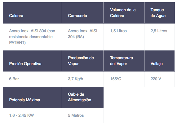 Generador de vapor, con recarga automática, con sensor de nivel electromagnético al interior de la caldera – True Temp, carrocería de acero inox, con aspiradora de solidos y liquidos con sistema de filtraje de agua y seprador de 1,2 KW, tanque de aspiración en acero inoxidable. Inyección de detergente e inyección de agua caliente estandar.