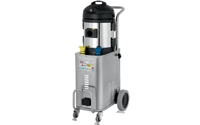 Generador de vapor bifasico o trifásico, con recarga automática y sensor de nivel electromagnético al interior de la caldera, carrocería de acero inox con impermeabilidad IPX5, inyección de detergente. Instrumento digital con función de: manómetro, cuenta horas, conexión directa a la red hídrica. Con aspirador de solidos y liquidos dotado de un flotador. Opcional: inyección de agua caliente.