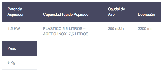 Datos Técnicos Aspirador
